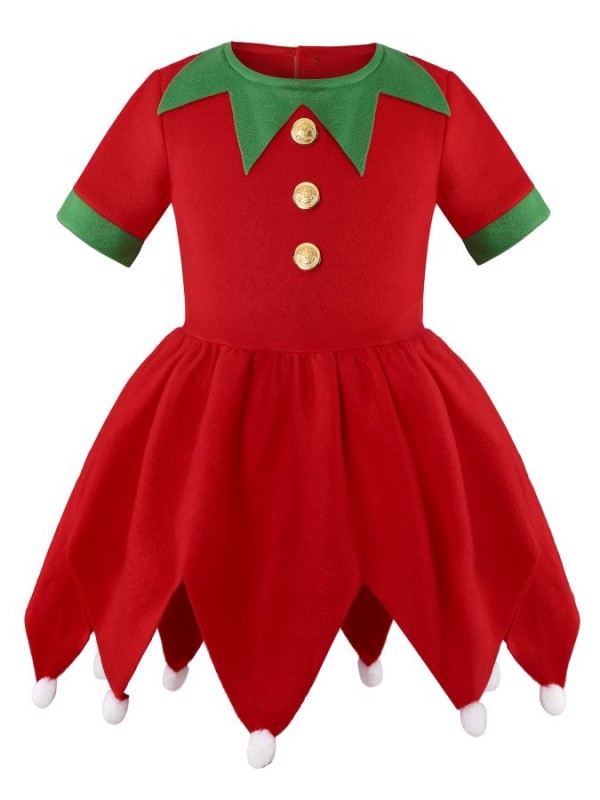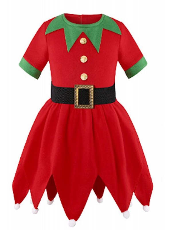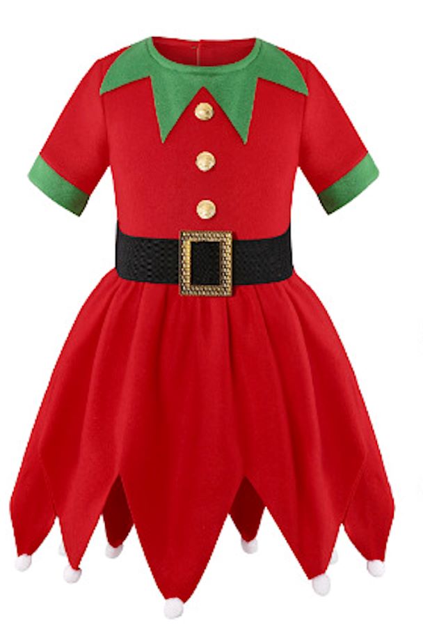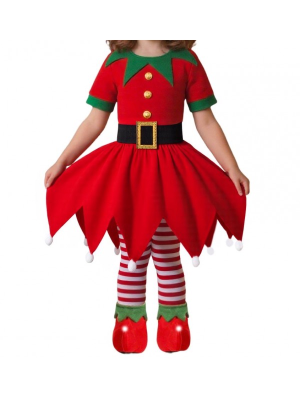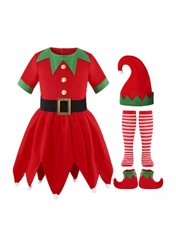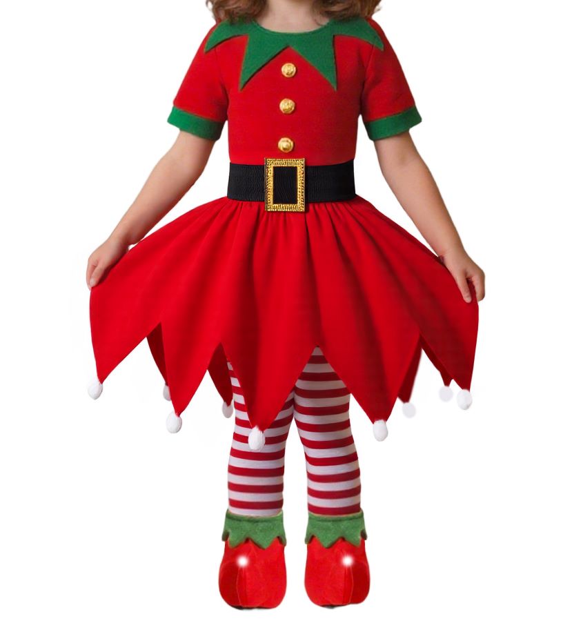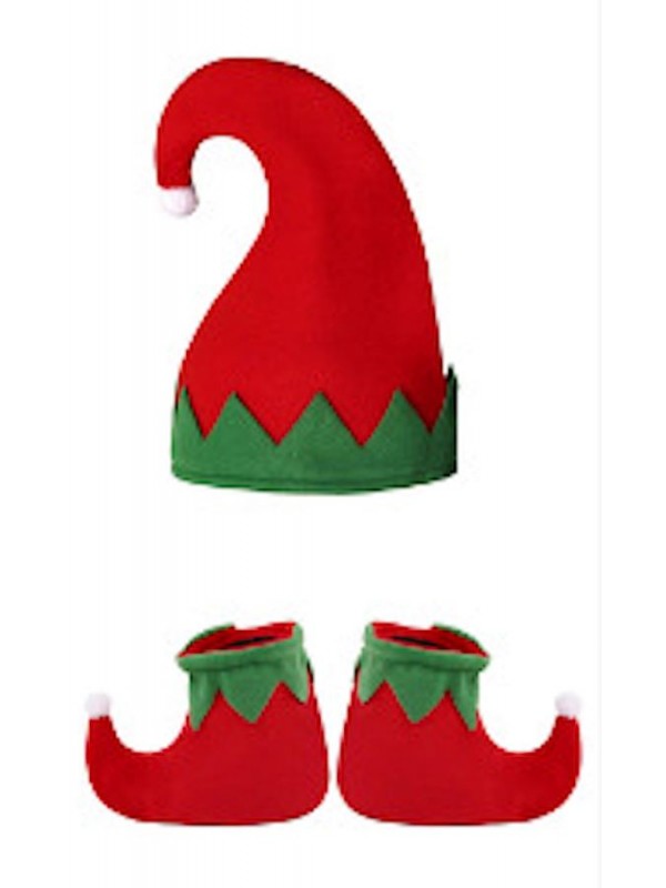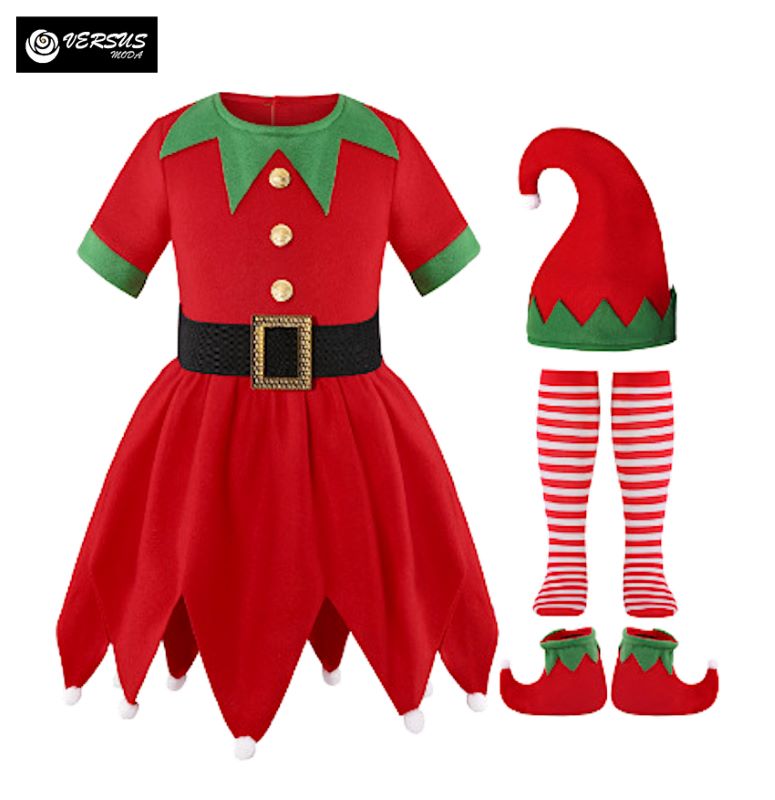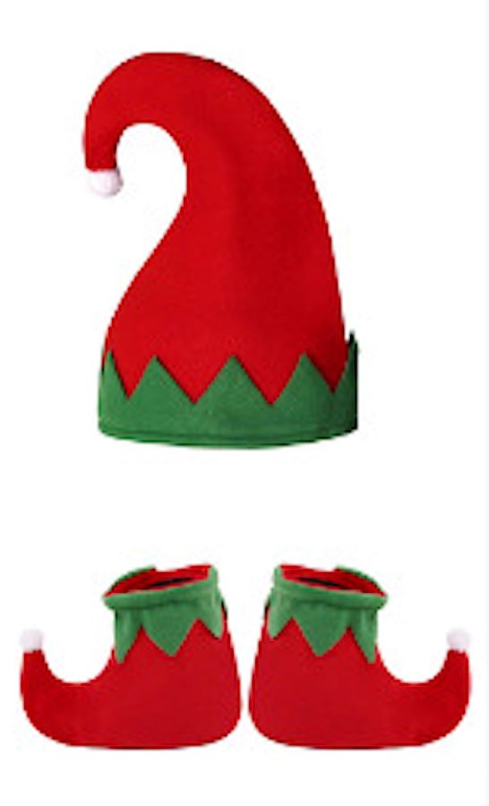 ELF017- ( Set 5 pezzi - 5 piece set ): Cappello / Hat + Vestito / Dress + Cinta / Belt + Calzini / Socks + Copri Scarpe / Shoes Cover