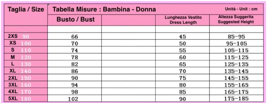 Utilizzare l' immagine della tabella per riferimento alla taglia da ordinare.