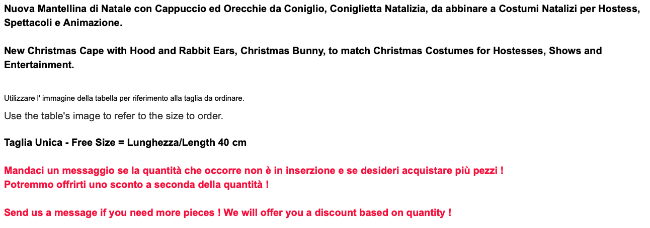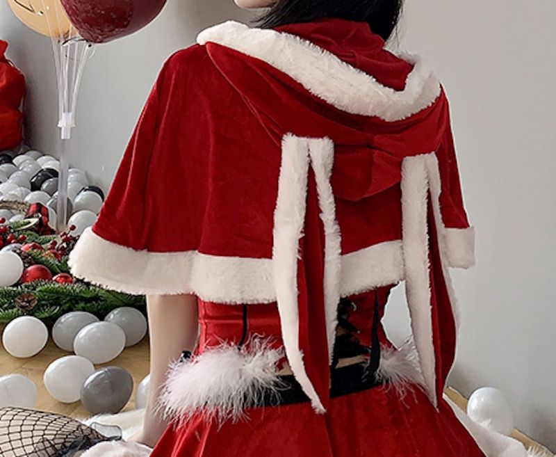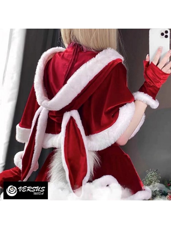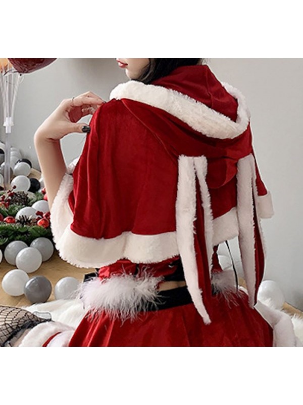 Mantella Donna Costume Babbo Natale Cosplay Hostess Christmas Rabbit Cape HOS090
