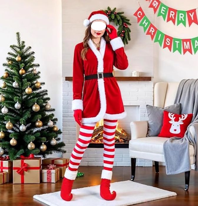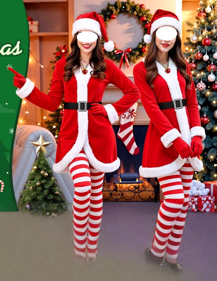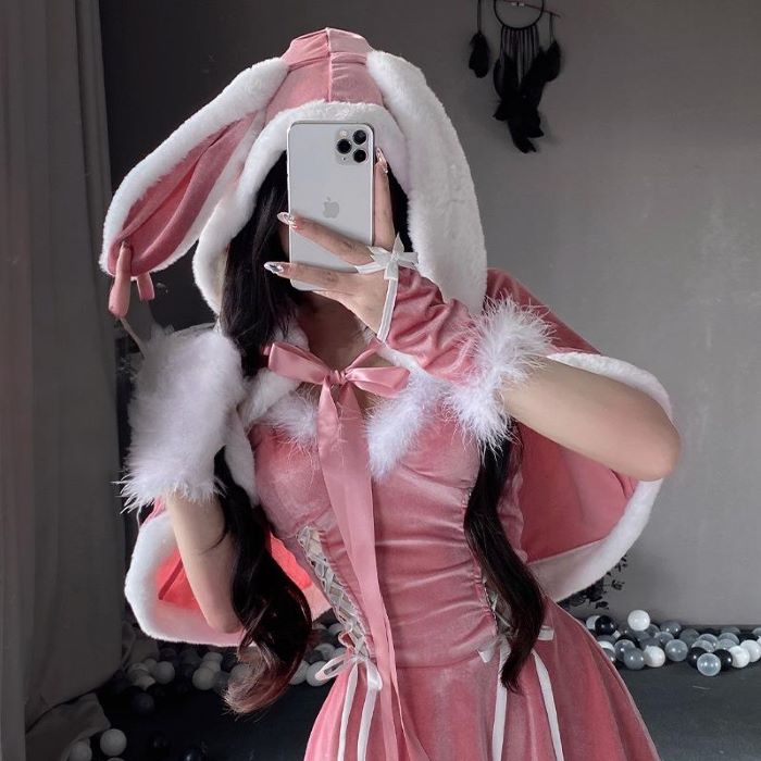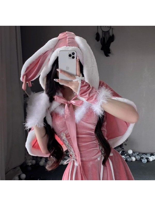 Mantella Donna Costume Babbo Natale Cosplay Hostess Christmas Rabbit Cape