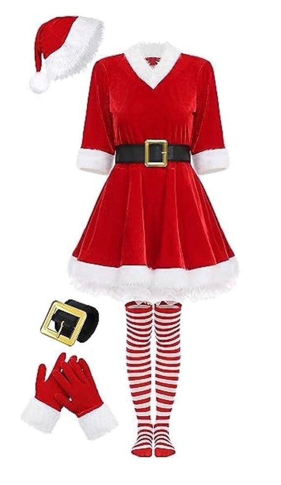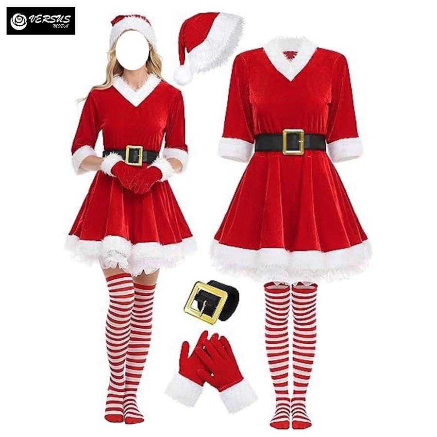 Vestito Costume Divisa Elfo Babbo Natale Donna
