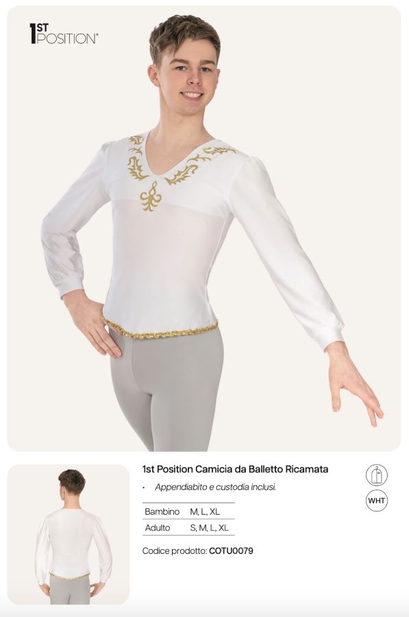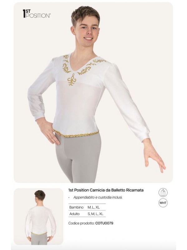 Camicia Danza Uomo da Balletto Ricamata 1st Position Saggio Principe Re COTU0079