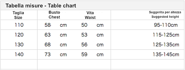 Taglia 150 = Busto 76 cm - Vita 62 cm - Suggerita per Altezza 145-155 cm