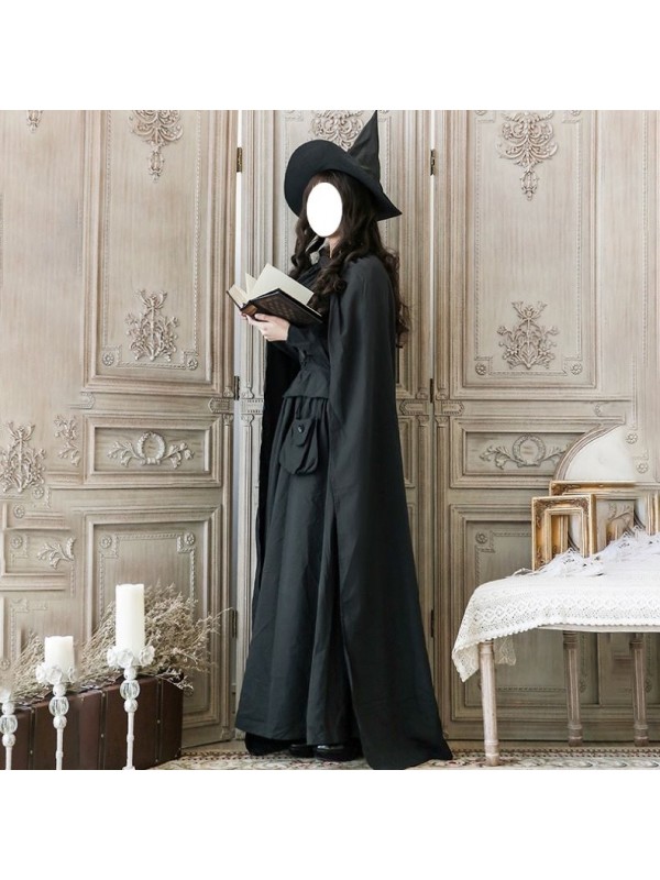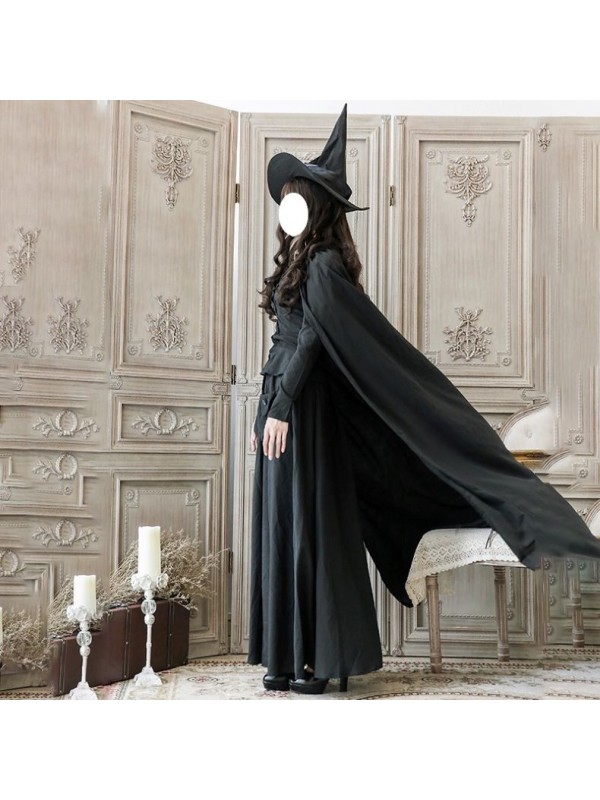 Costume Abito Vestito da Strega, Abito con Cappello, Mantello e Corpetto