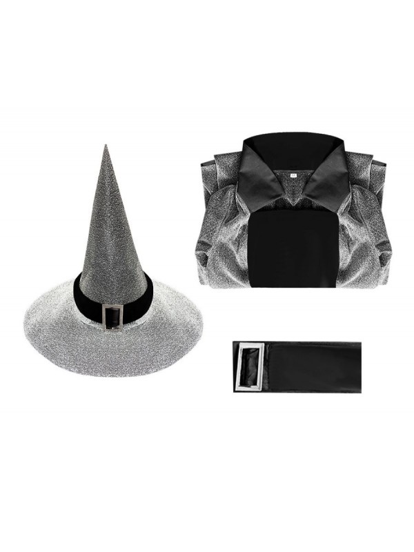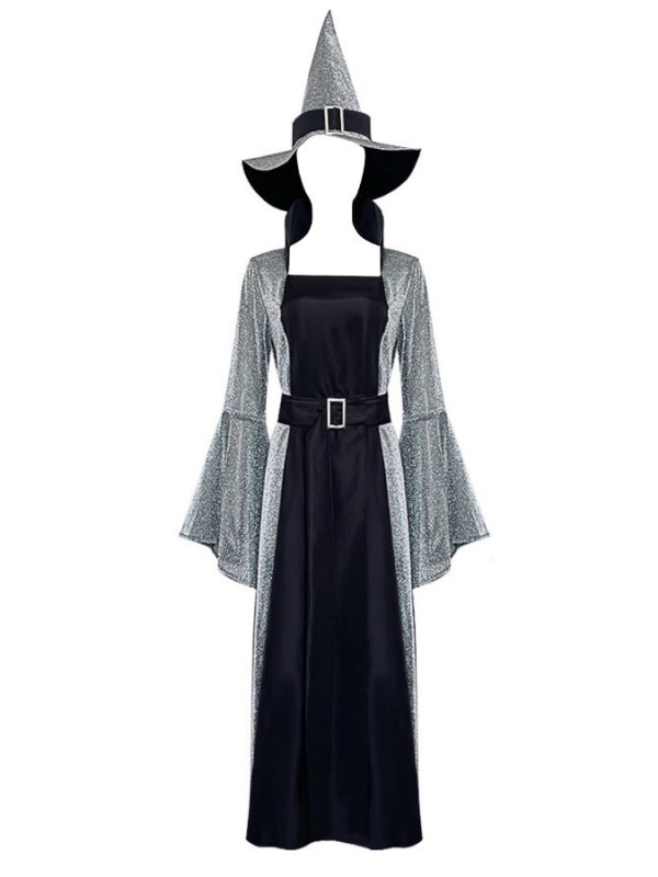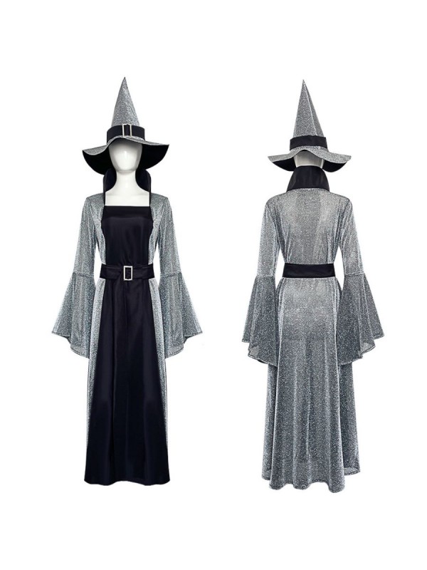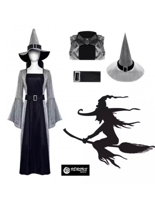 Strega Vestito Carnevale Argento Nero Halloween Cosplay Witch Costume STREGA012