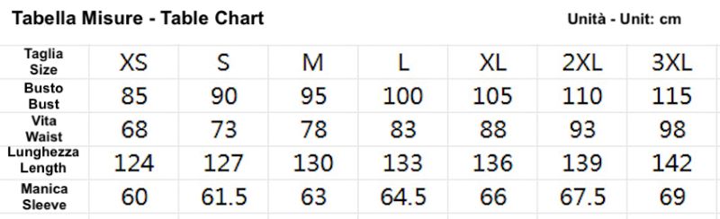 Utilizzare l' immagine della tabella per riferimento alla taglia da ordinare.