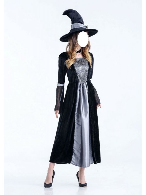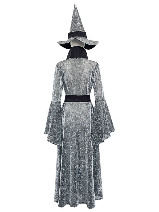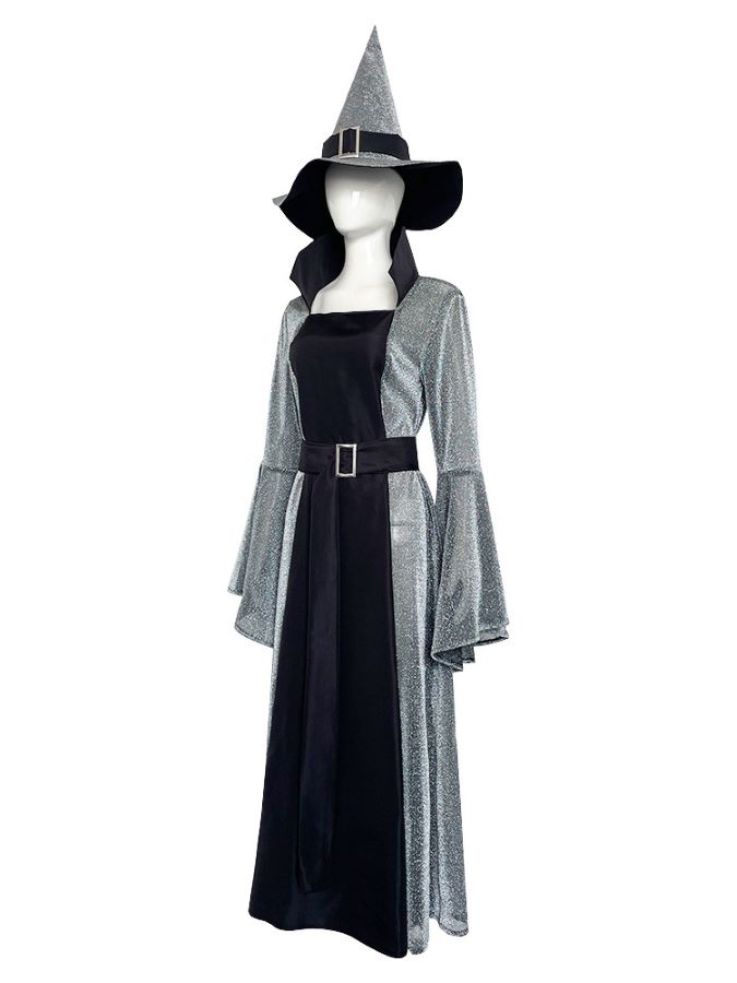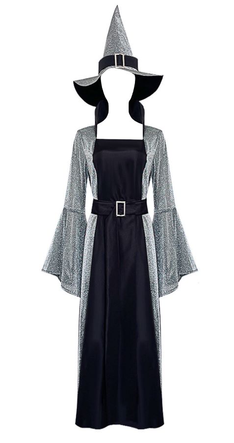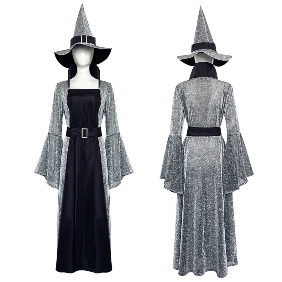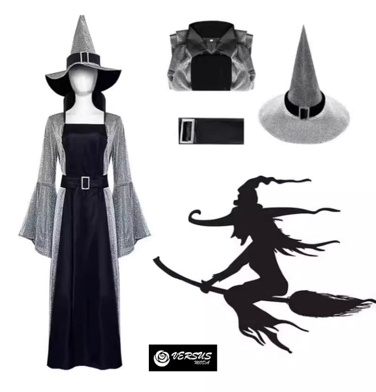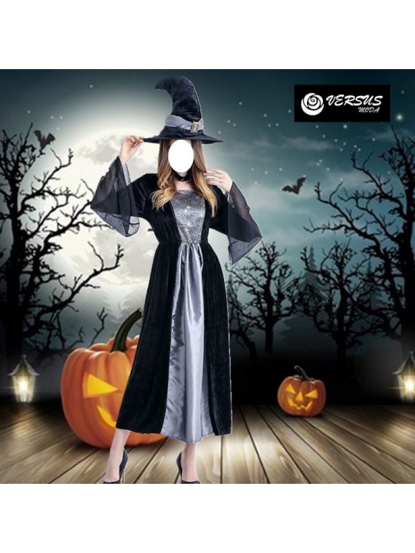 Strega Vestito Carnevale Argento Nero Halloween Cosplay Witch Costume STREGA012