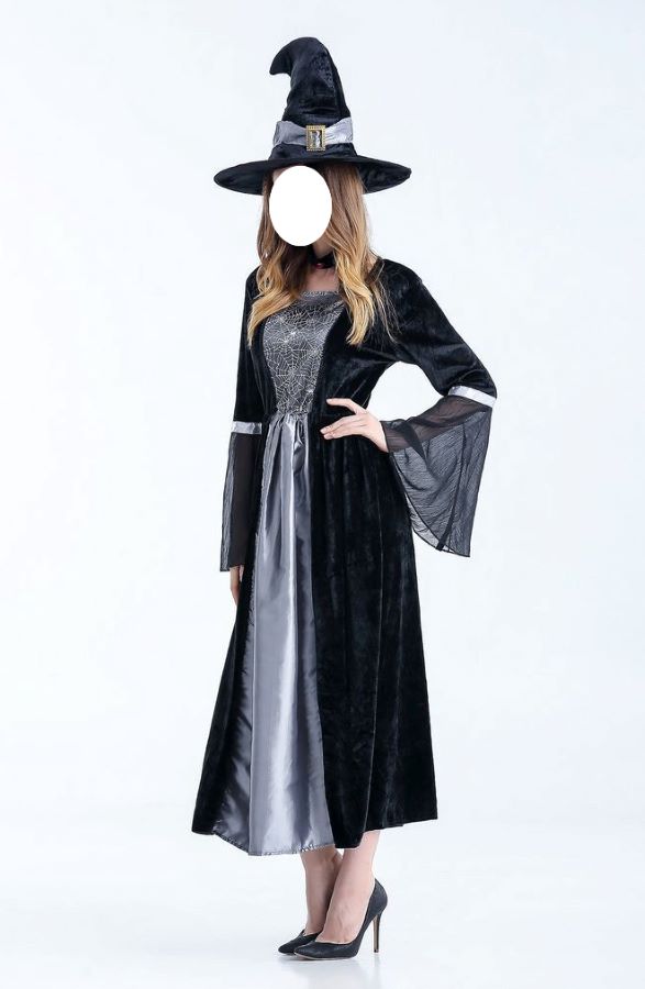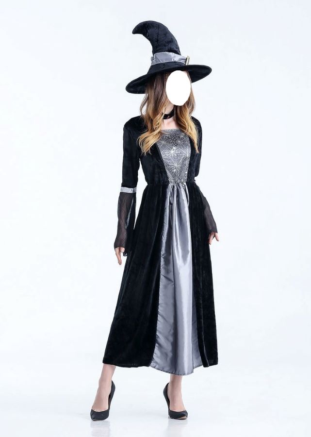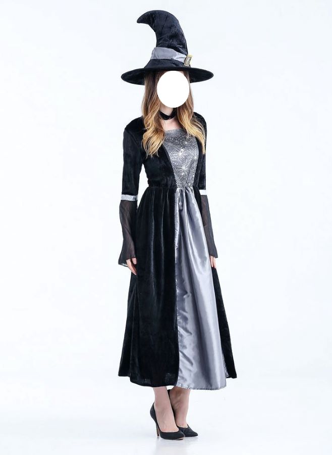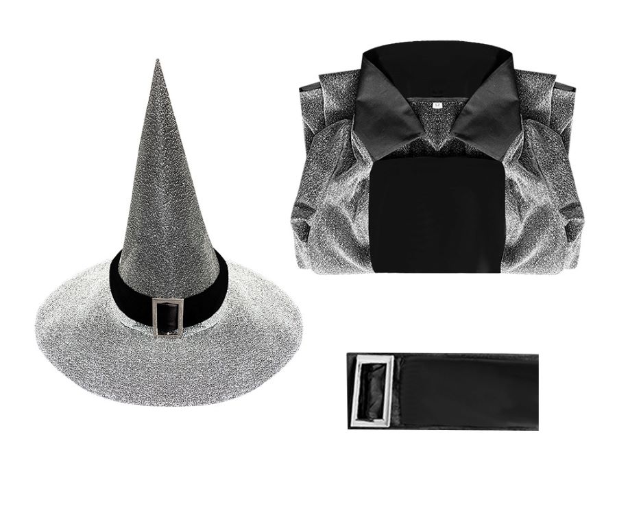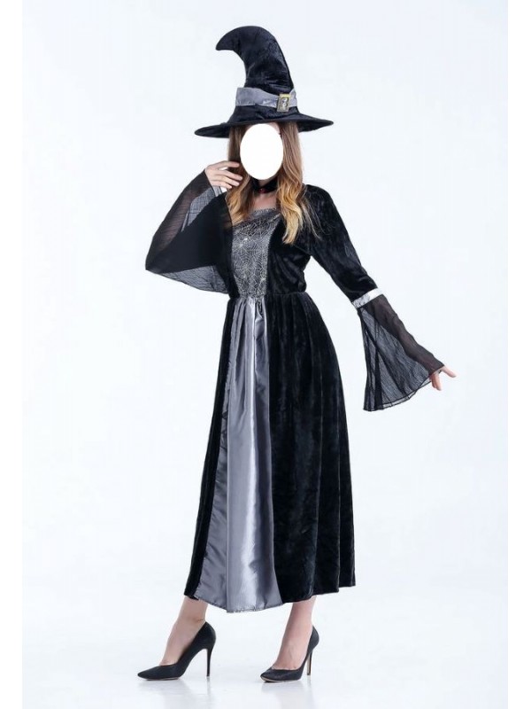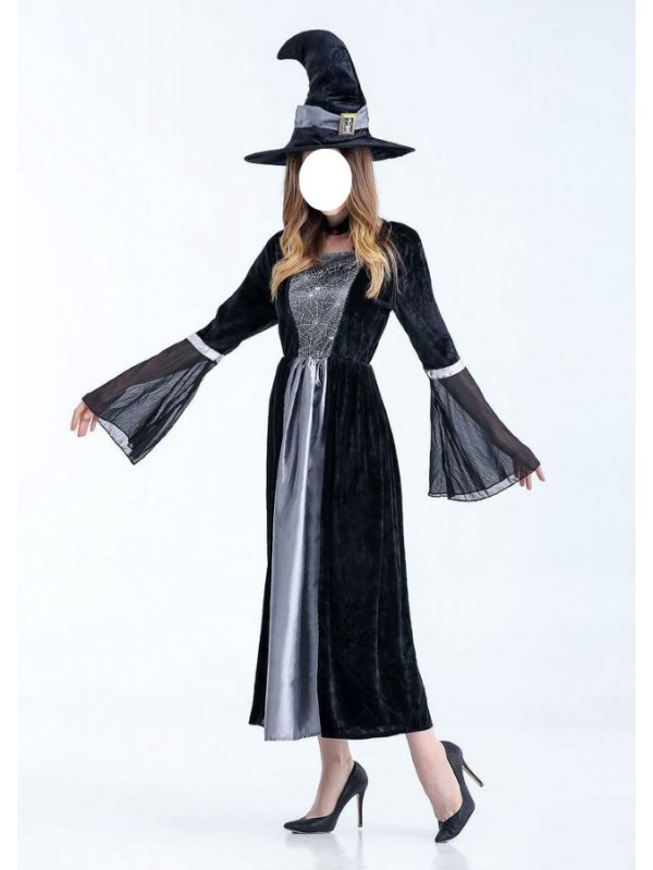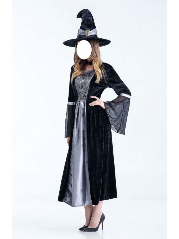 Strega Vestito Carnevale Argento Nero Halloween Cosplay Witch Costume STREGA012