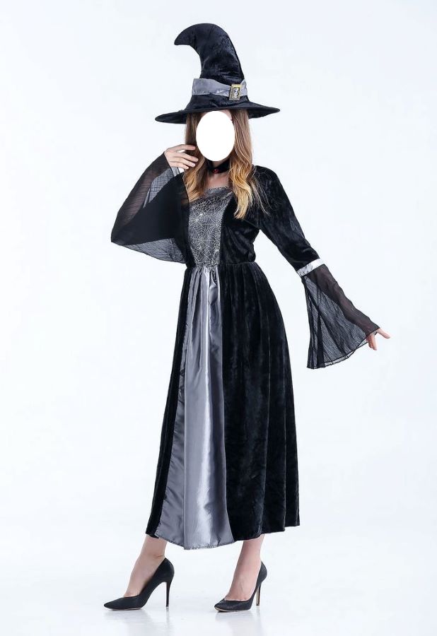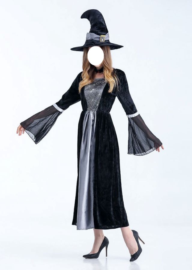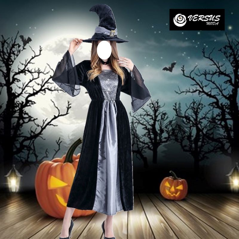 Costume Abito Vestito da Strega, Abito con Cappello.