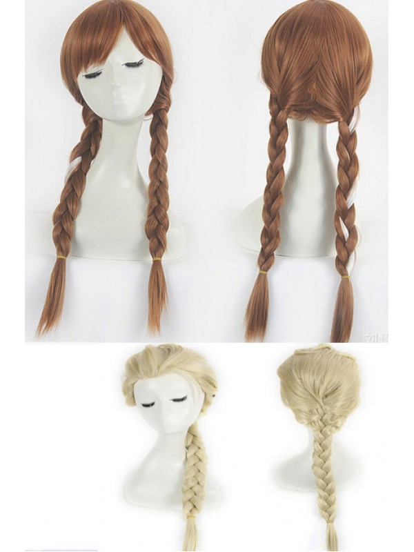 Parrucca Trecce Rossa, Bionda. Per Vestito Carnevale Regina dei Ghiacci, Principessa
