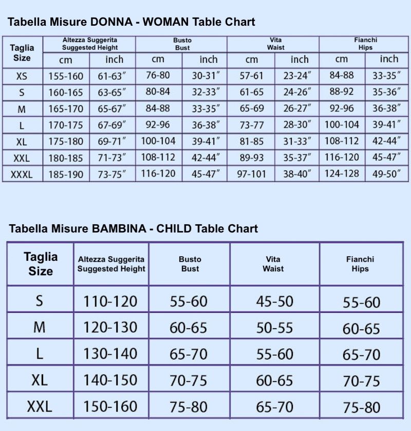 Utilizzare la tabella per riferimento alla taglia da ordinare.
