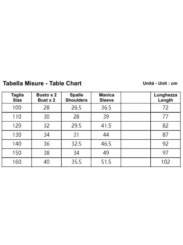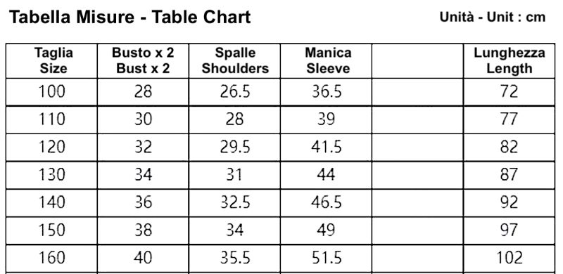 Utilizzare la tabella per riferimento alla taglia da ordinare.