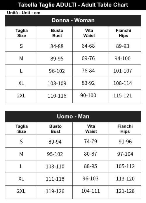 Utilizzare la tabella per riferimento alla taglia da ordinare.