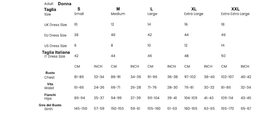 Utilizzare l' immagine della tabella per riferimento alla taglia da ordinare.