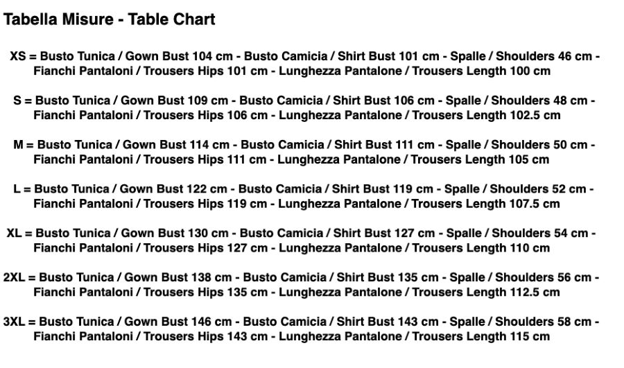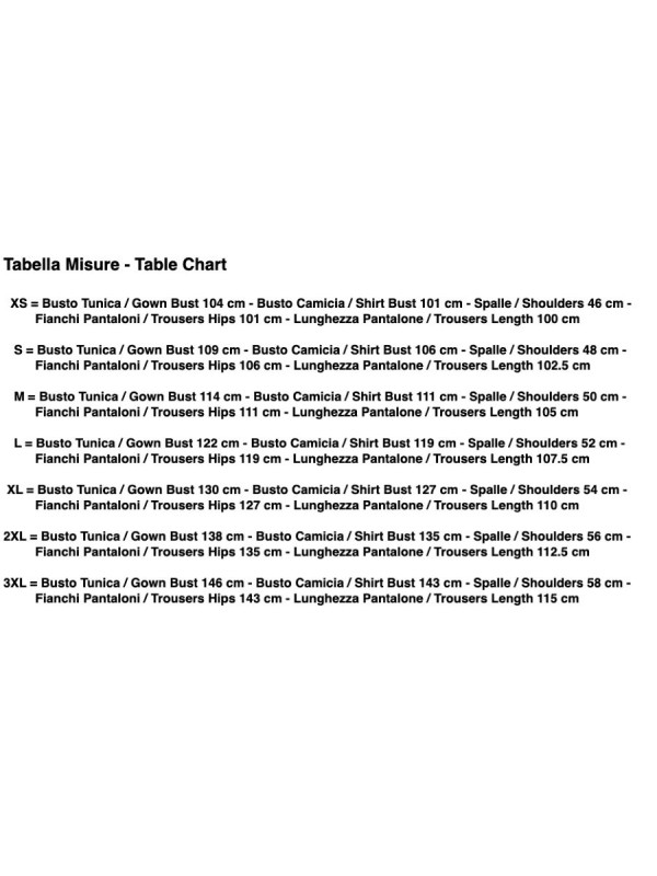 Utilizzare la tabella per riferimento alla taglia da ordinare.