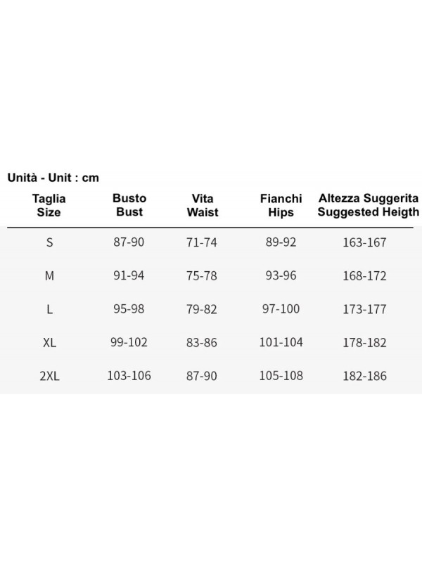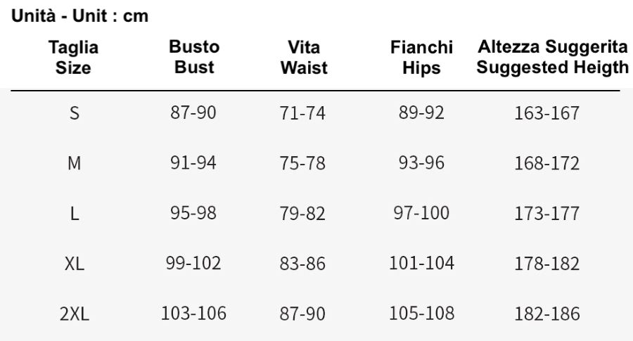 Utilizzare la tabella per riferimento alla taglia da ordinare.