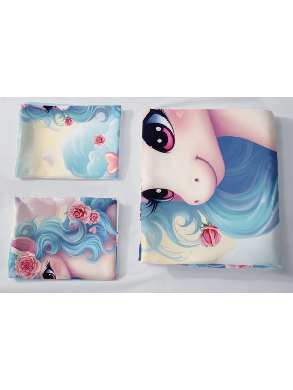 Set Copri Piumone Lenzuolo Federe Copripiumino Unicorno Duvet Cover BED0095