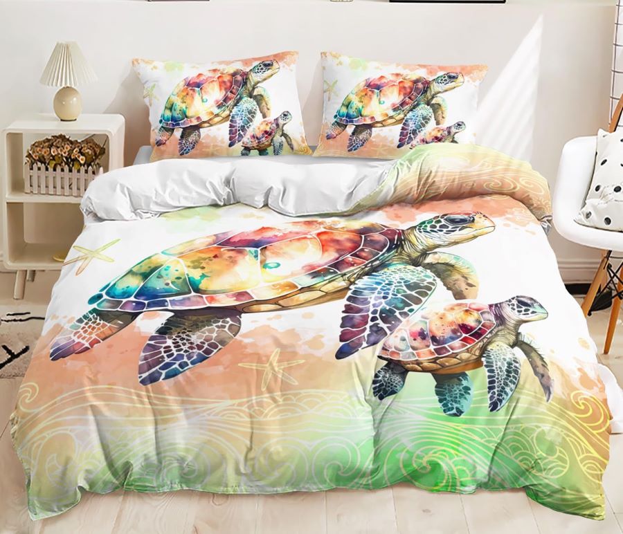 Set Copri Piumone Lenzuolo Federe Copripiumino Tartaruga Duvet Cover BED0101