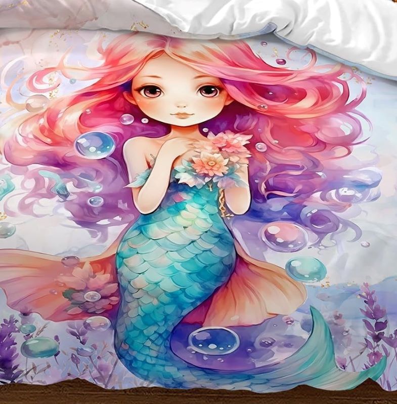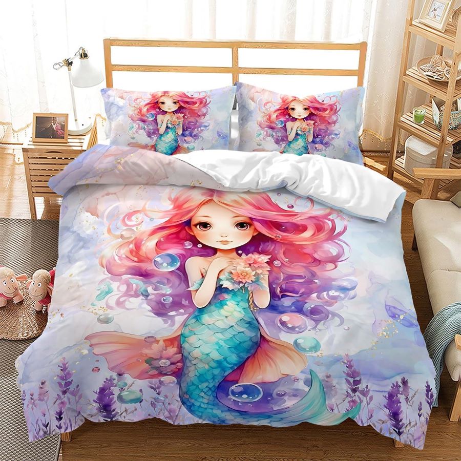 Set Copri Piumone Lenzuolo Federe Copripiumino Sirena Duvet Cover BED0102