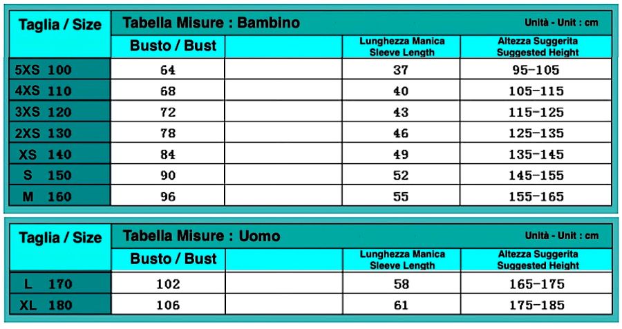 Utilizzare l' immagine della tabella per riferimento alla taglia da ordinare.