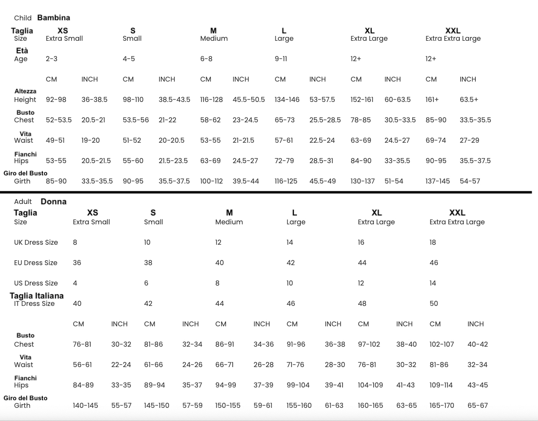 Utilizzare l' immagine della tabella per riferimento alla taglia da ordinare.