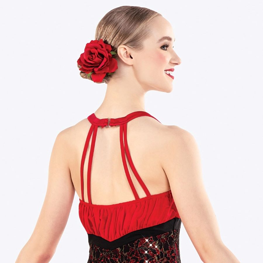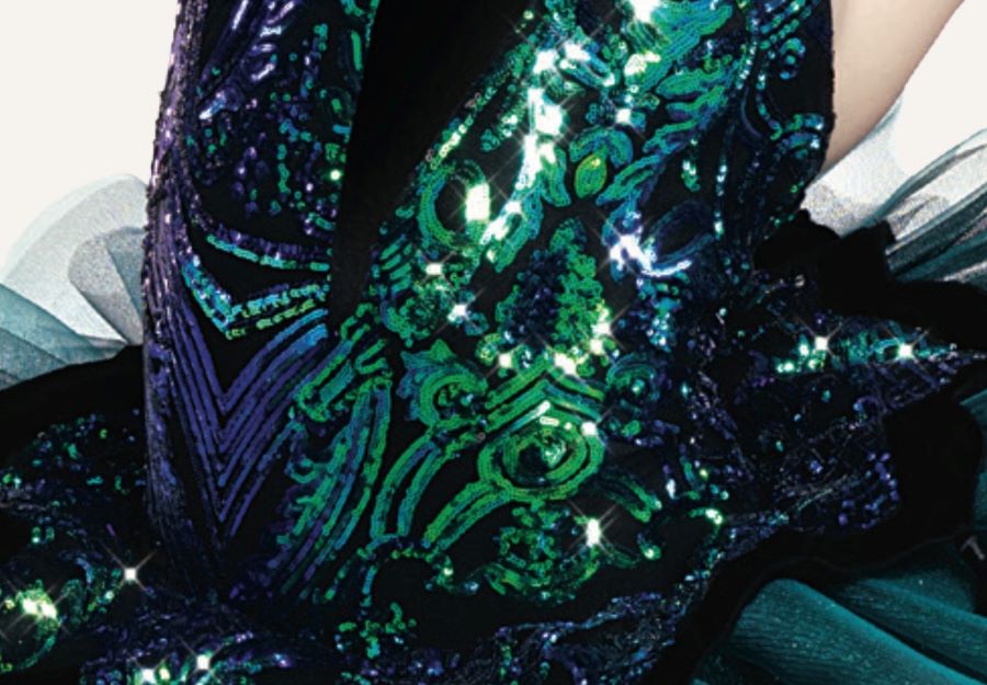 - Sovrapposizione del corpetto in mesh con paillettes iridescenti