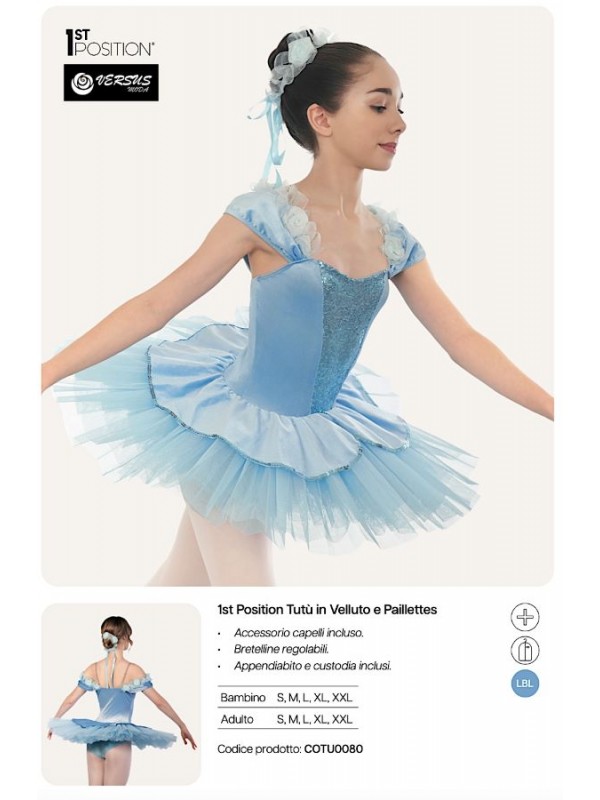 Le Ballerine abbelliranno il palco con questo splendido tutù , caratterizzato da un lussuoso corpetto di velluto e un centro scintillante di paillettes.