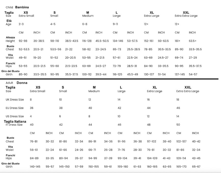 Utilizzare l' immagine della tabella per riferimento alla taglia da ordinare.