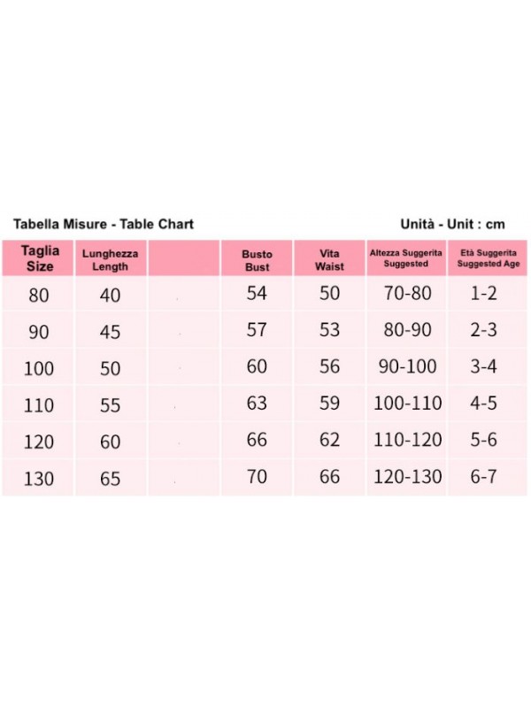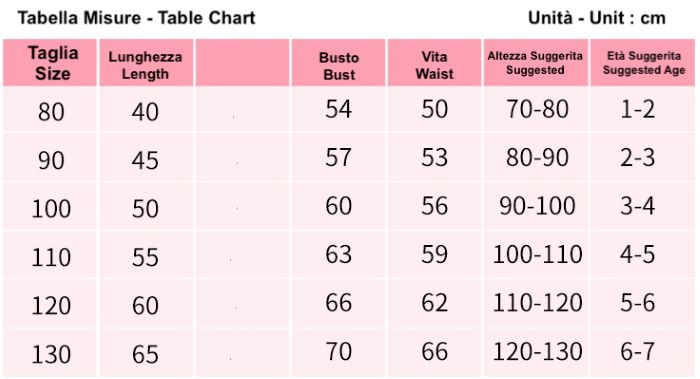 Utilizzare la tabella per riferimento alla taglia da ordinare