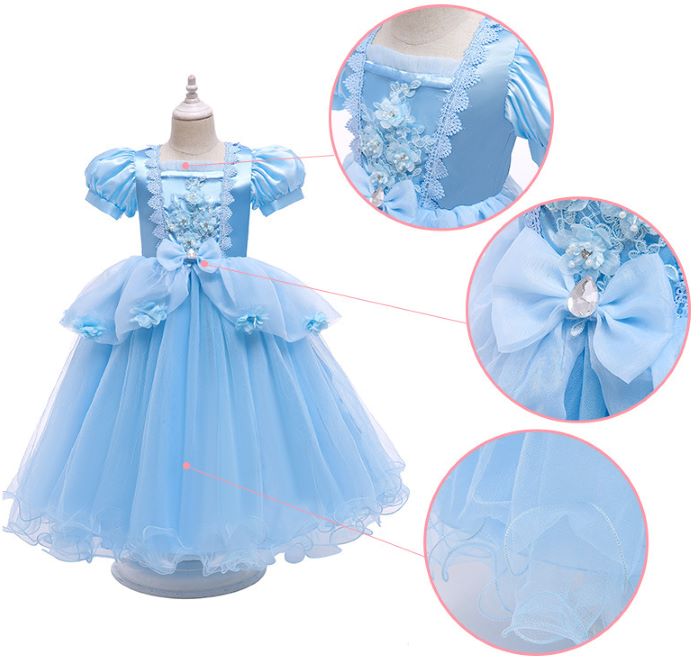 Cenerentola Costume Carnevale Bambina. Resta ampio senza uso del sottogonna.