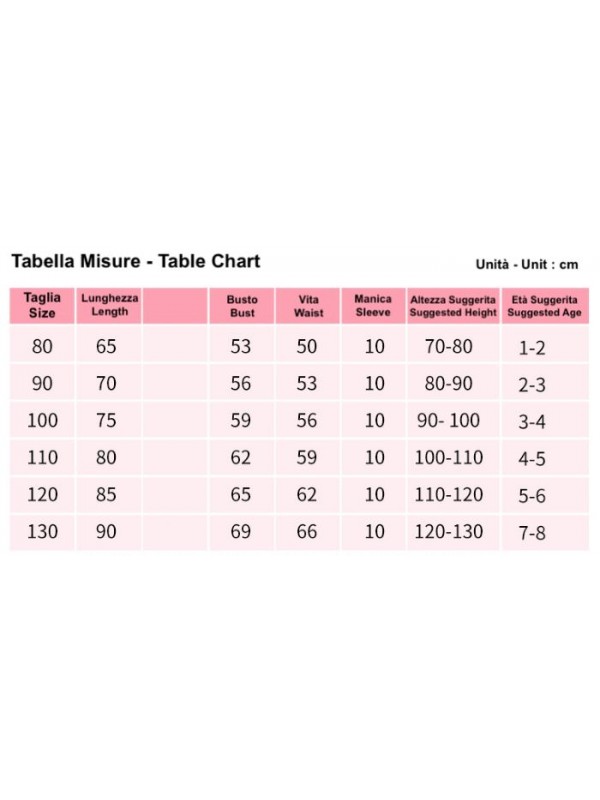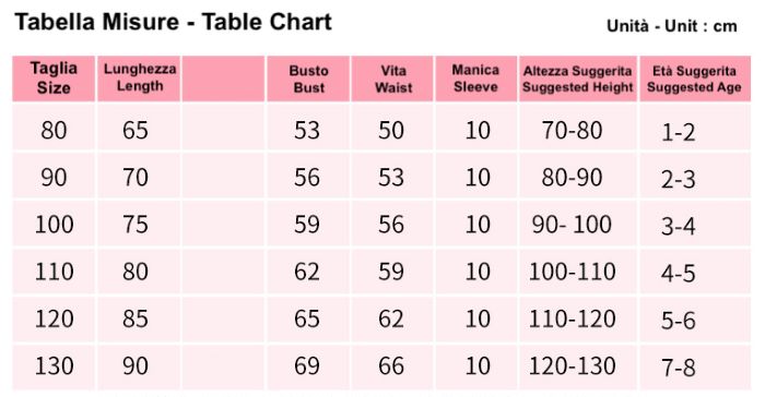 Per ragioni di sicurezza i vestiti sono progettati per età per non essere lunghi fino al pavimento, in quanto potrebbero ostacolare il piede del bambino nel gioco e facilmente causare cadute.