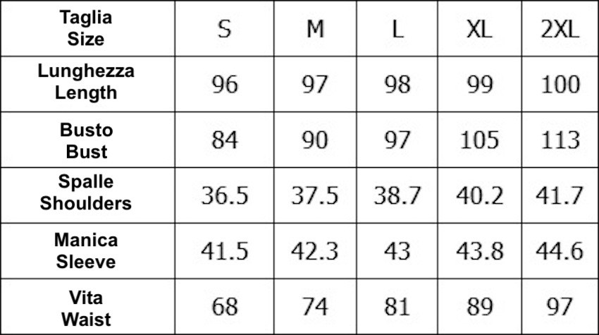 Se le vostre misure sono esattamente quelle riportate nella tabella, si consiglia di ordinare la taglia più grande della vostra.