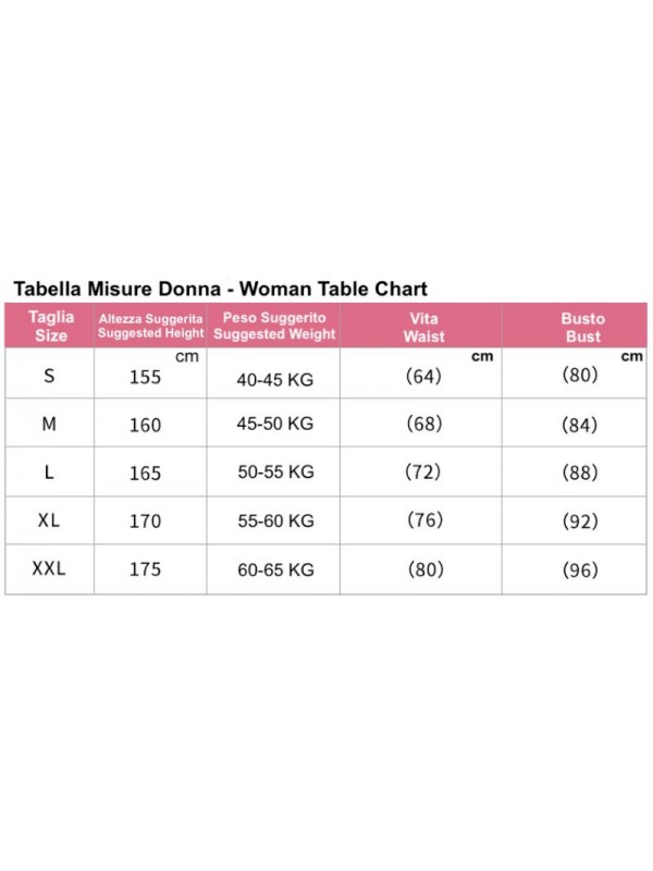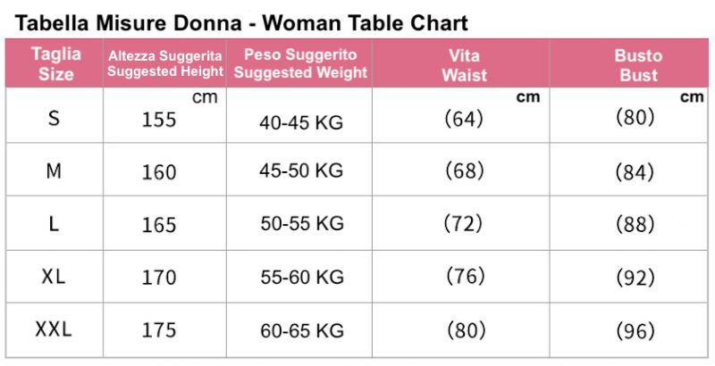 Utilizzare l' immagine della tabella per riferimento alla taglia da ordinare.