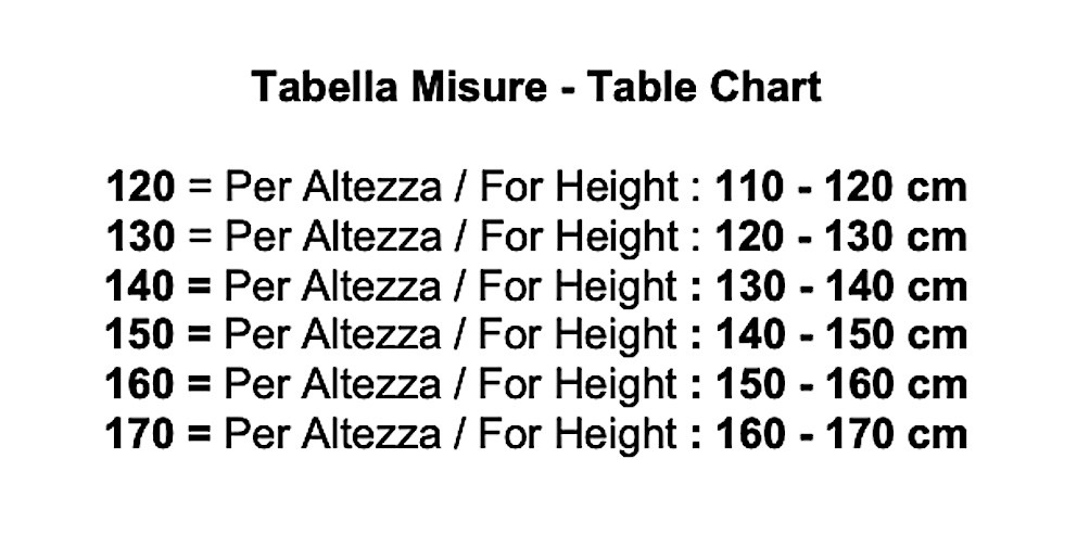 Utilizzare l' immagine della tabella per riferimento alla taglia da ordinare