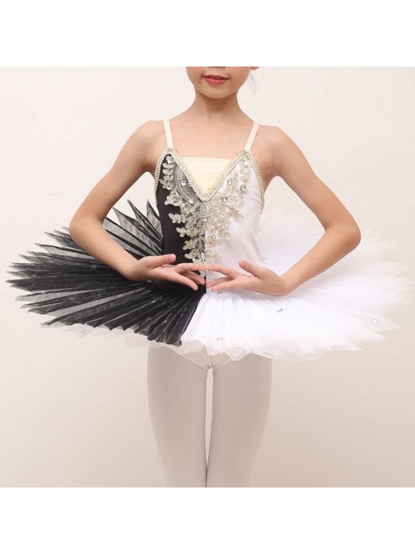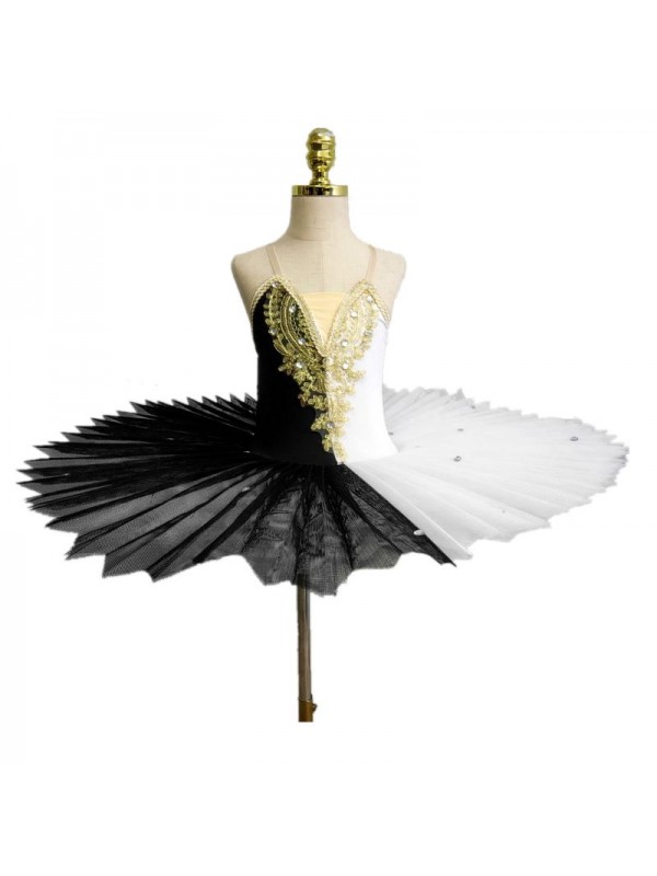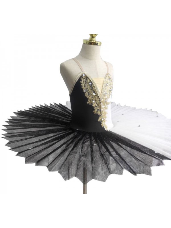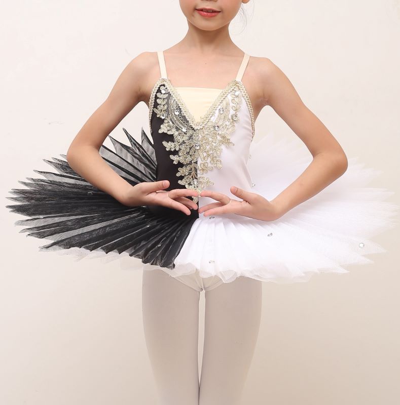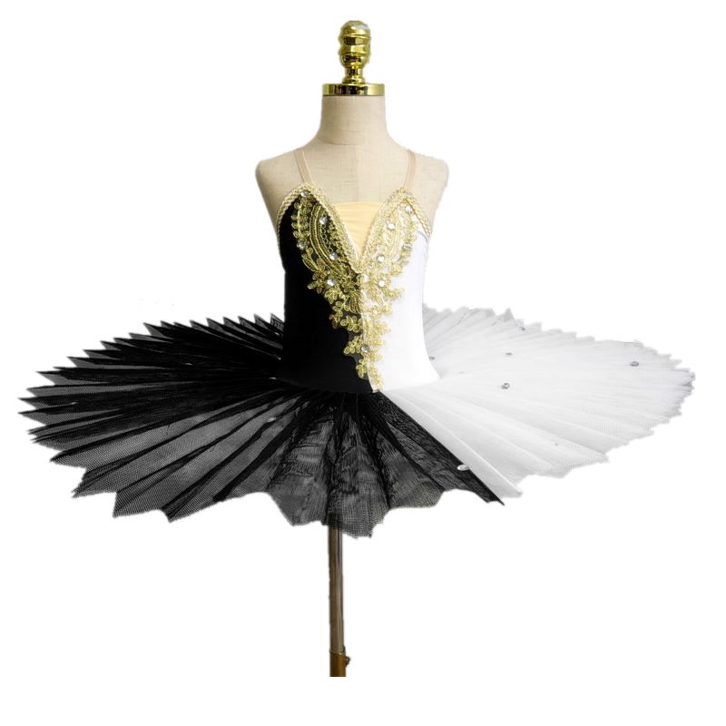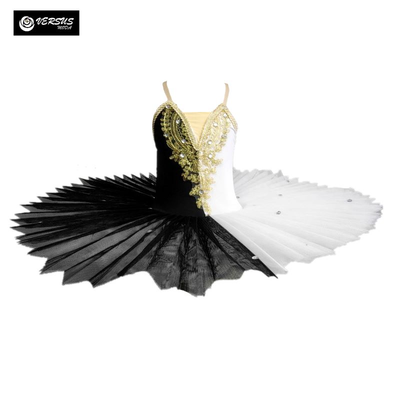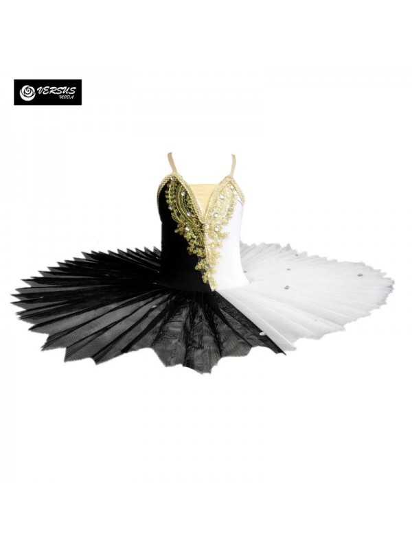 Tutù per Saggio Danza Classica Bambine e Donne, Metà Bianco e Metà Nero per Balletto Lago dei Cigni.