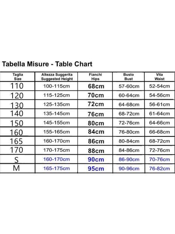 Utilizzare l' immagine della tabella per riferimento alla taglia da ordinare.