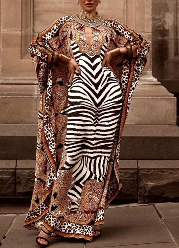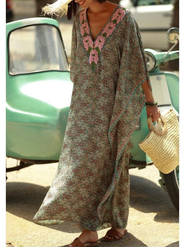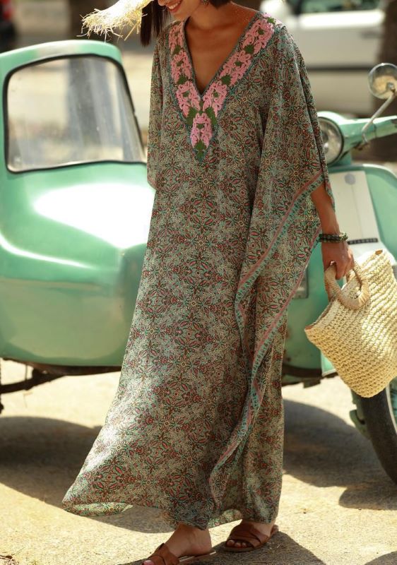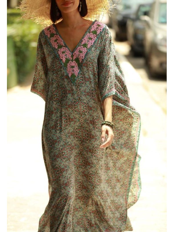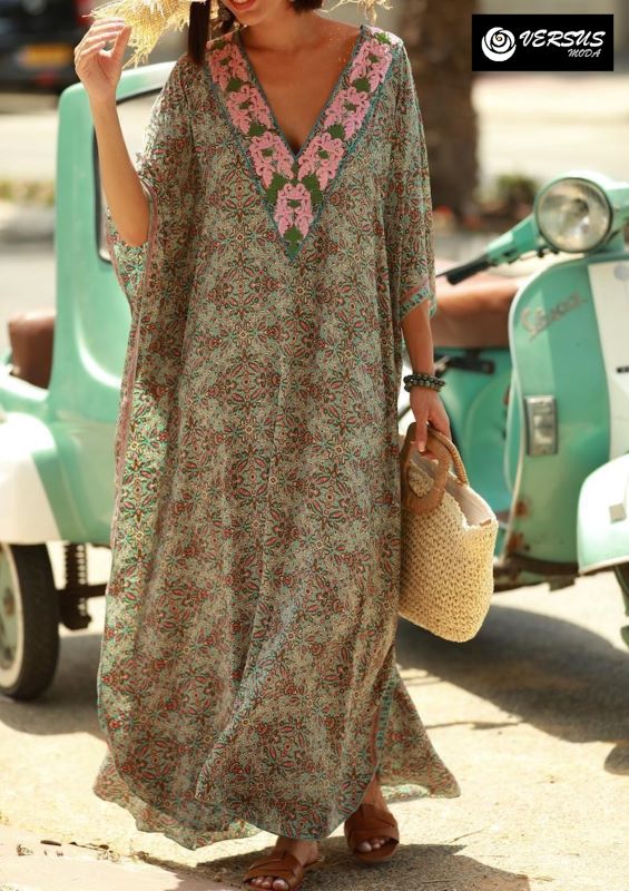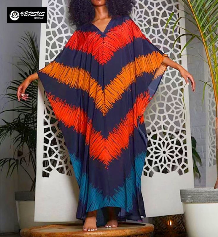 Copricostume Caftano Lungo Donna Mare Multicolor Woman Boho Chic Kaftan