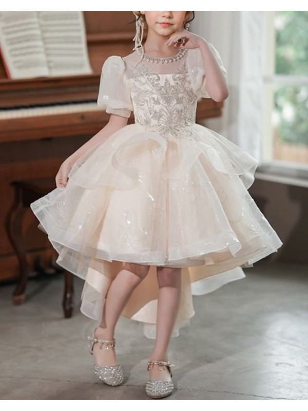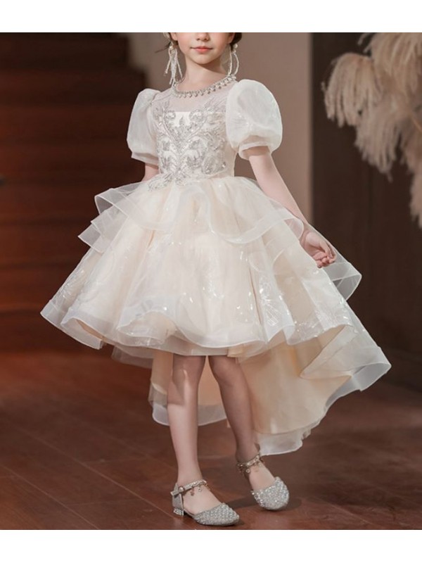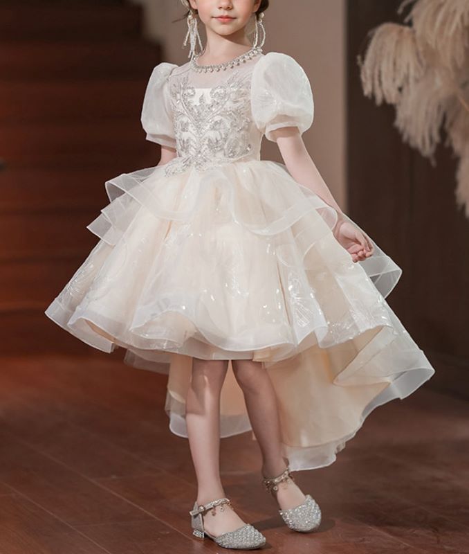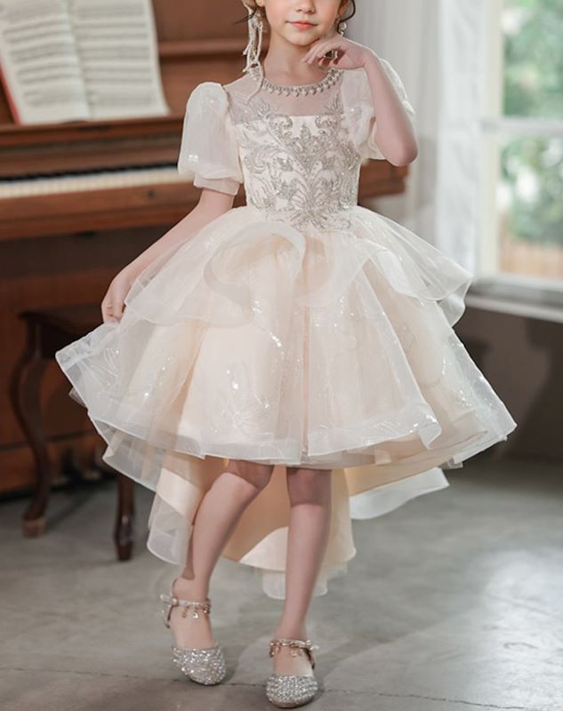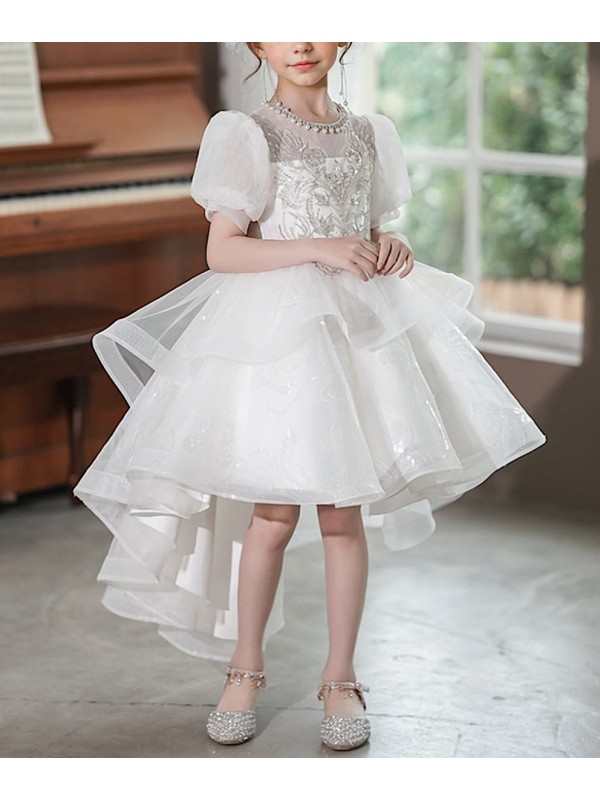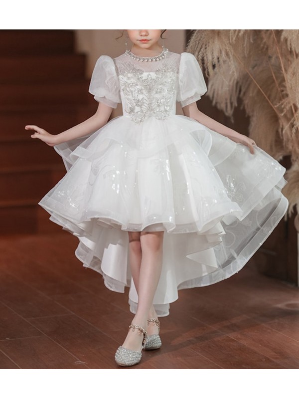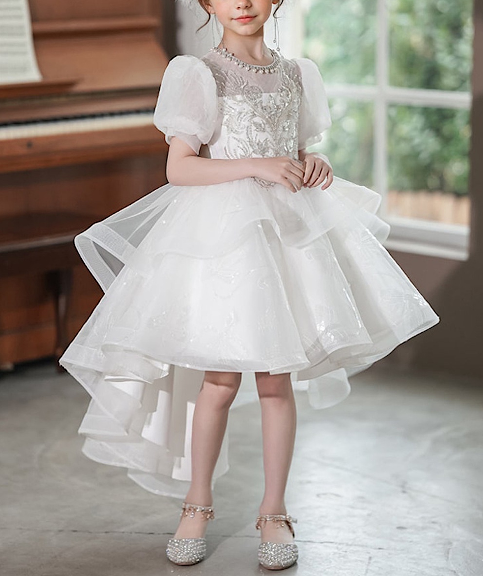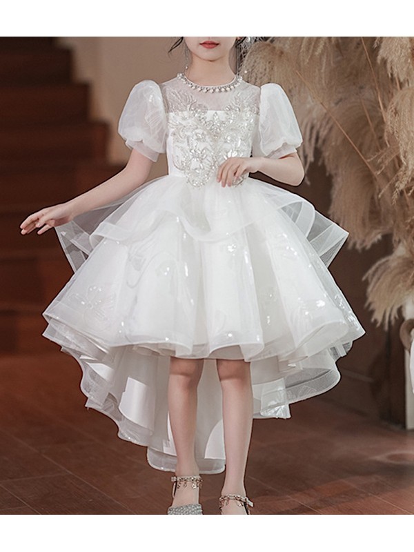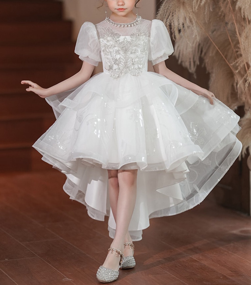 Vestito Cerimonia Damigella Comunione Asimmetrico Bambina Party Dress