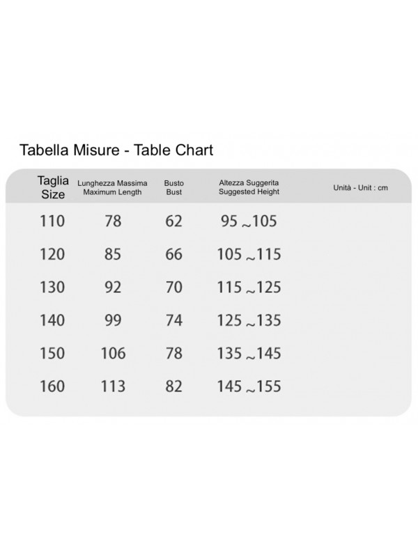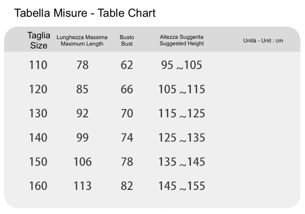 Utilizzare l' immagine della tabella per riferimento alla taglia da ordinare.