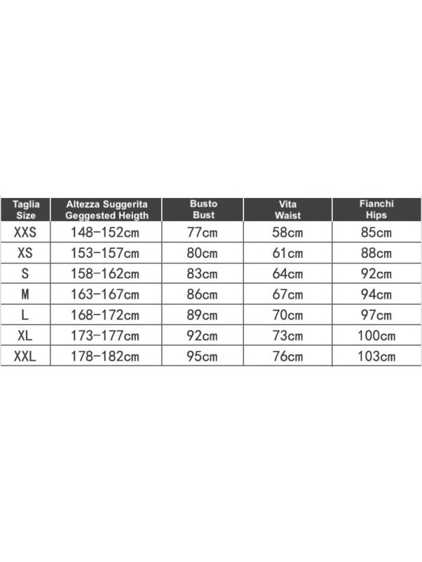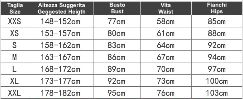Utilizzare l' immagine della tabella per riferimento alla taglia da ordinare.