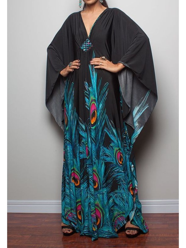 Copricostume Caftano Lungo Donna Mare Multicolor Woman Boho Chic Kaftan