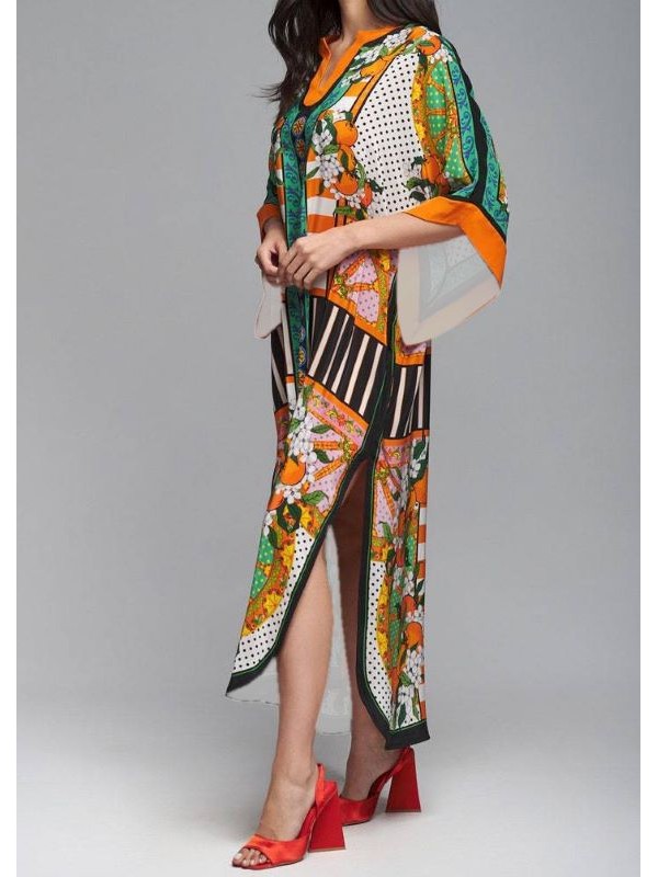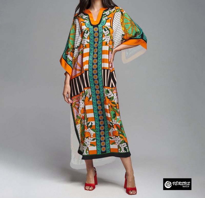 Copricostume Caftano Lungo Donna Mare Multicolor Woman Boho Chic Kaftan