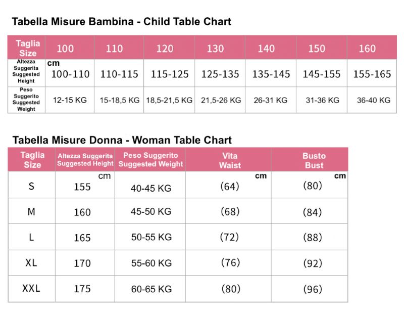 Utilizzare l' immagine della tabella per riferimento alla taglia da ordinare.