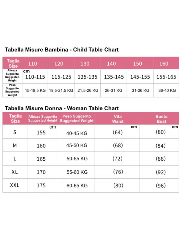 Utilizzare l' immagine della tabella per riferimento alla taglia da ordinare