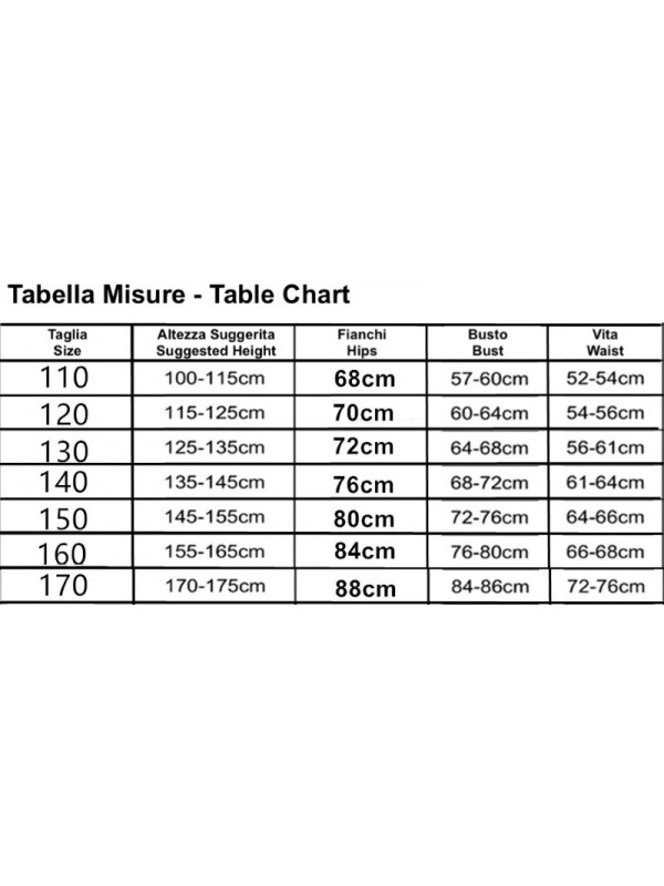 Utilizzare l' immagine della tabella per riferimento alla taglia da ordinare.