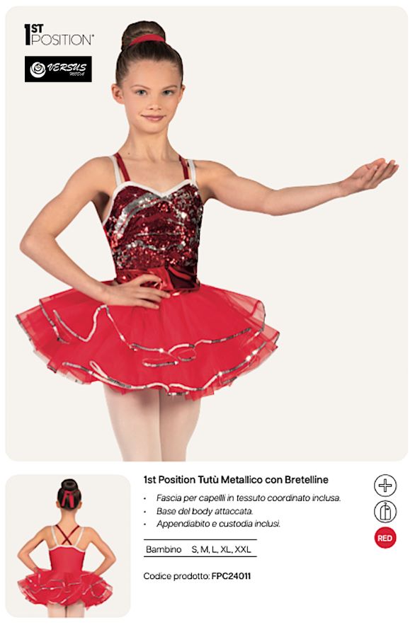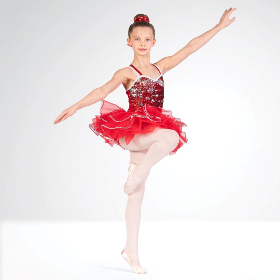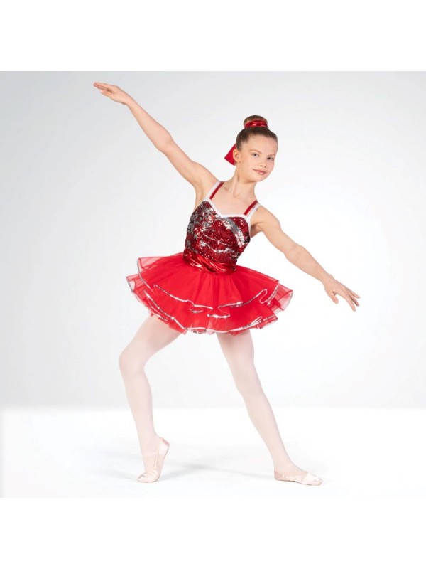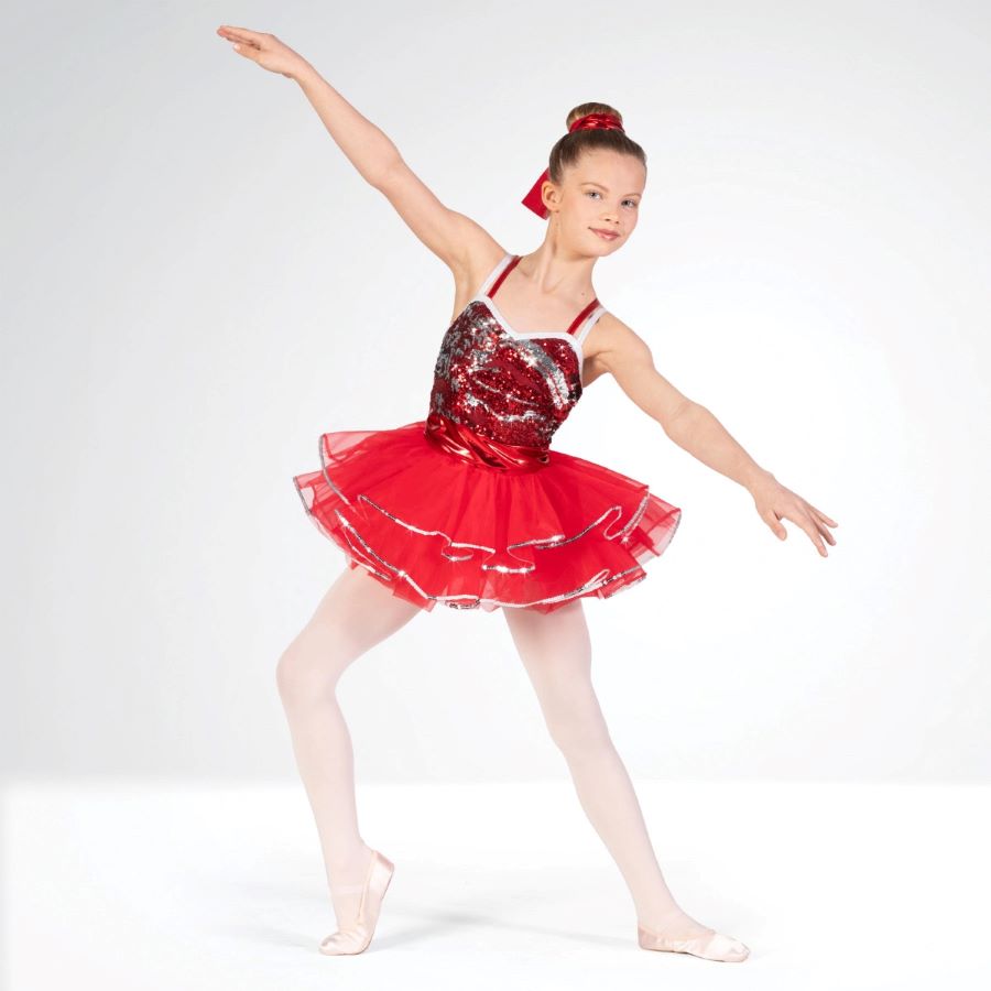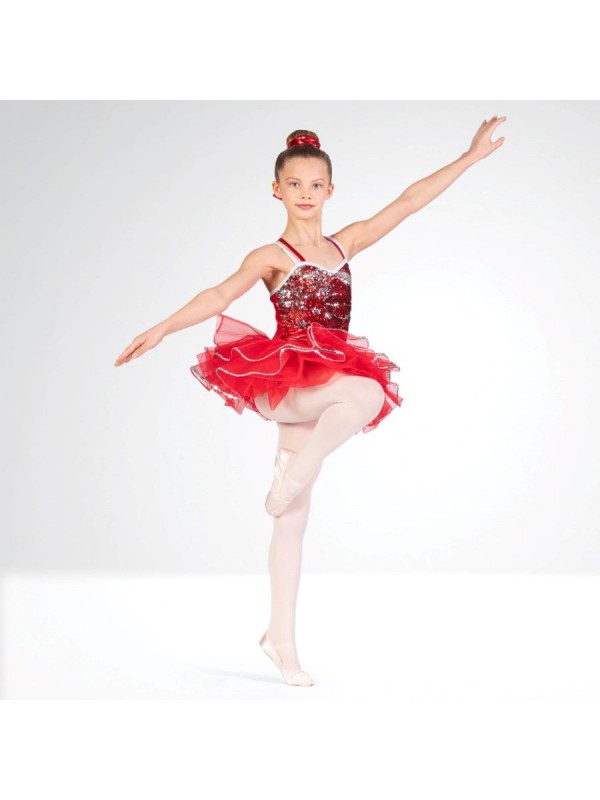 Le piccole ballerine ed il pubblico si innamoreranno di questo abito con bretelline della 1st Position. Con uno scollo a cuore e paillettes applicate, questo vestito tocca le corde del cuore sia nel balletto che in numeri più sfarzosi, Carmen, Coppelia, Circo