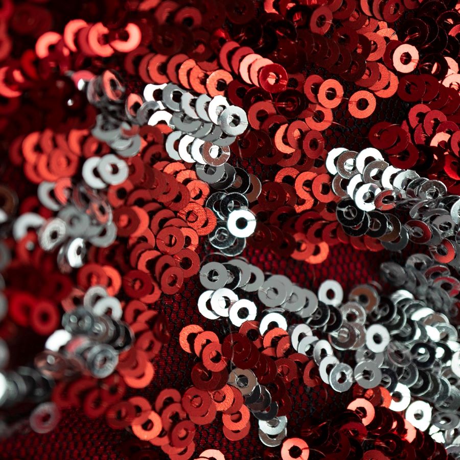 La gonna e` composta da quattro strati di tessuto in rete e presenta paillettes applicate