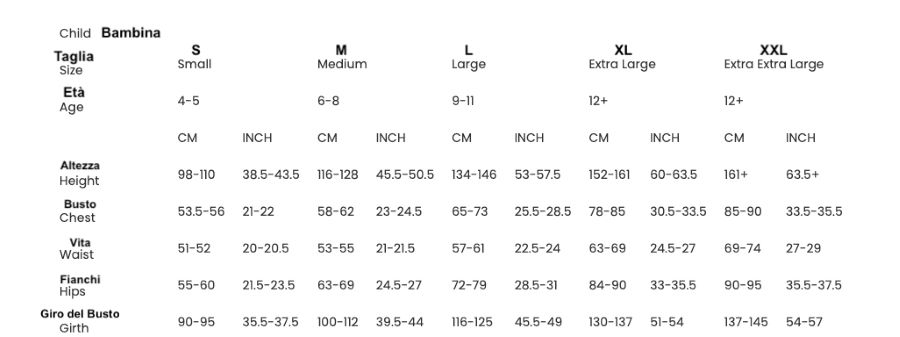 Utilizzare l' immagine della tabella per riferimento alla taglia da ordinare.