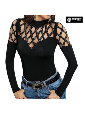 VersusModa Linea ANEL, Spice Girl Top, Maglia Scollo a U, Slim Fit, Manica Lunga.