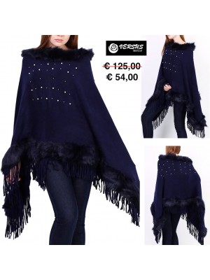 Stupendo Poncho Donna con Finta Pelliccia, Frange e Decorazioni, caldo e Confortevole. Taglia Unica 160 x 60 cm